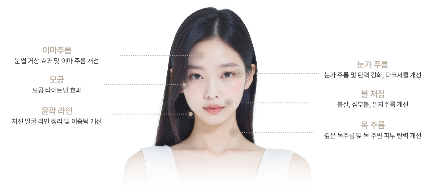 주름 개선은 물론 타이트닝과 리프팅 효과까지 함께 기대할 수 있습니다.