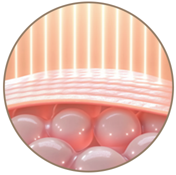 레이저 에너지가 진피층을 자극해 피부를 당기고 탄력을 강화합니다. |