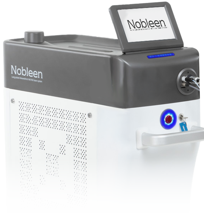 노블린은 노블렉스 레이저(색소치료)와 에일린 레이저(혈관치료)가 합쳐진 듀얼 파장 레이저로 1,064nm / 755nm 두가지 파장을 이용하여 두꺼운 털부터 얇은 솜털까지 뛰어난 제모 효과를 기대할 수 있습니다.